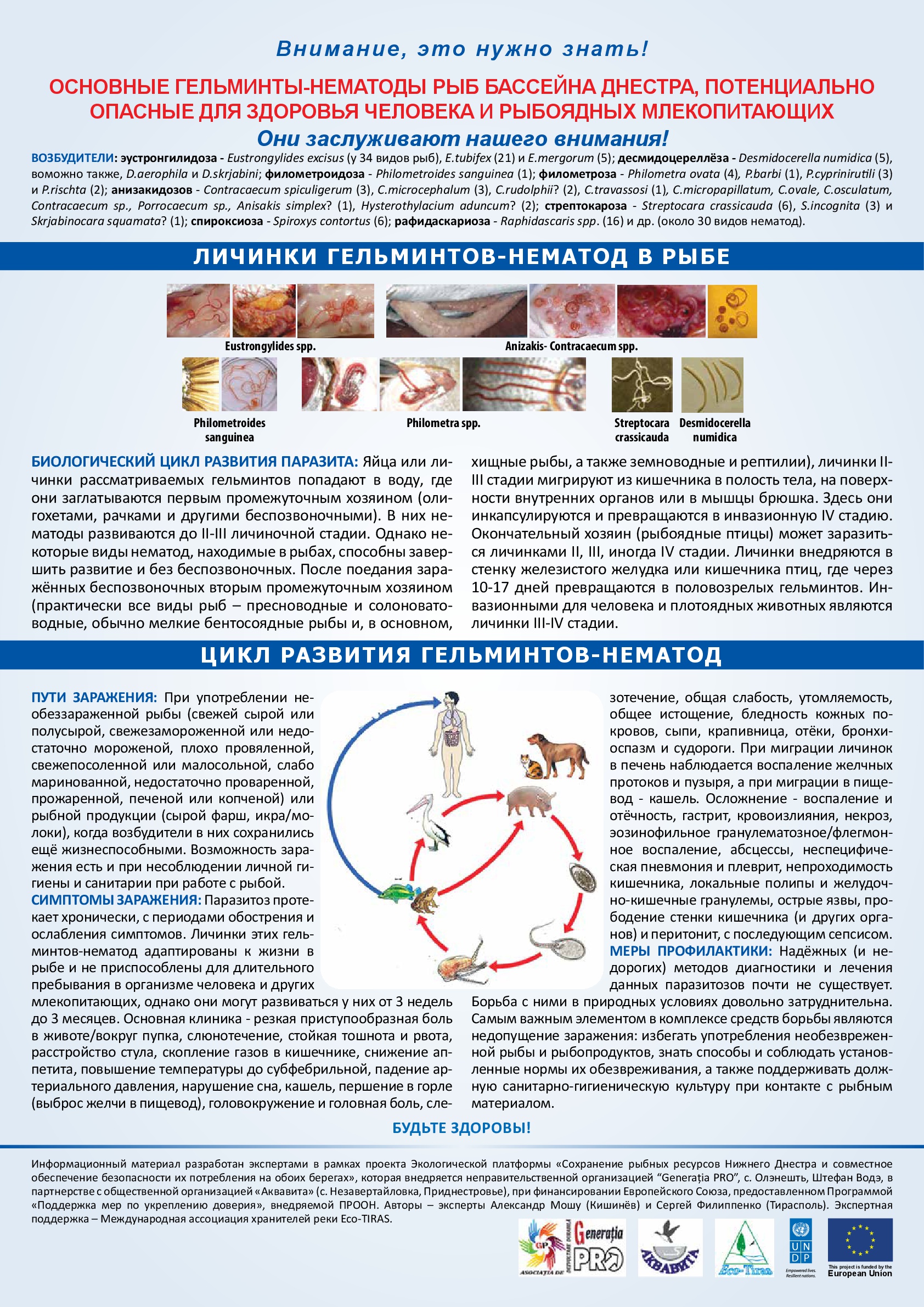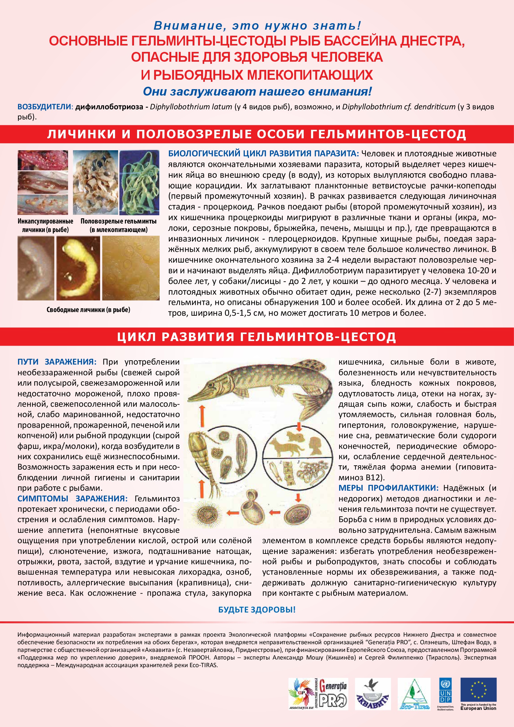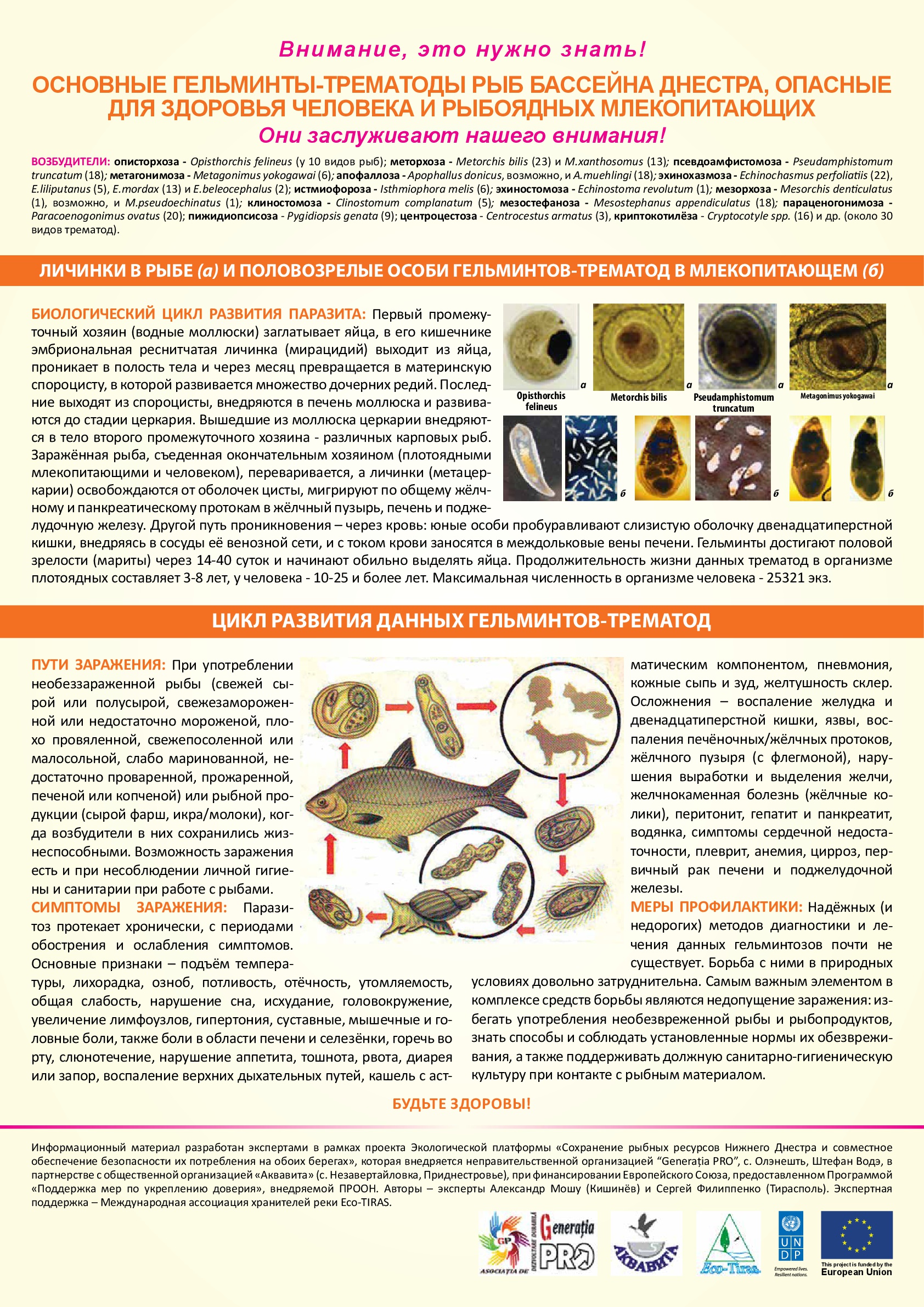 111. Паразитические черви рыб бассейна Днестра, передающиеся человеку: Александру Мошу; координатор: Тромбицкий Илья. – Кишинэу : Eco-TIRAS, 2021 (Типогр. Арконтех ООО). – 26 стр. скачать,